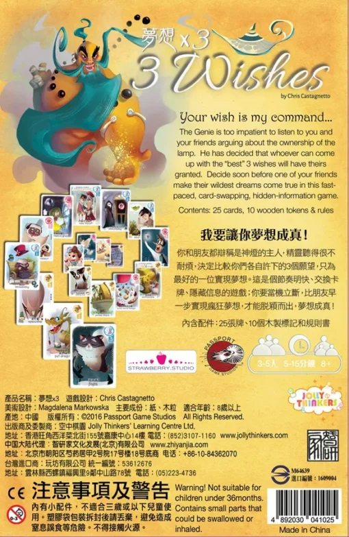 3 Wishes er et selskabs-/familiespil for 3-5 spillere, der spiller på 3-5 minutter.