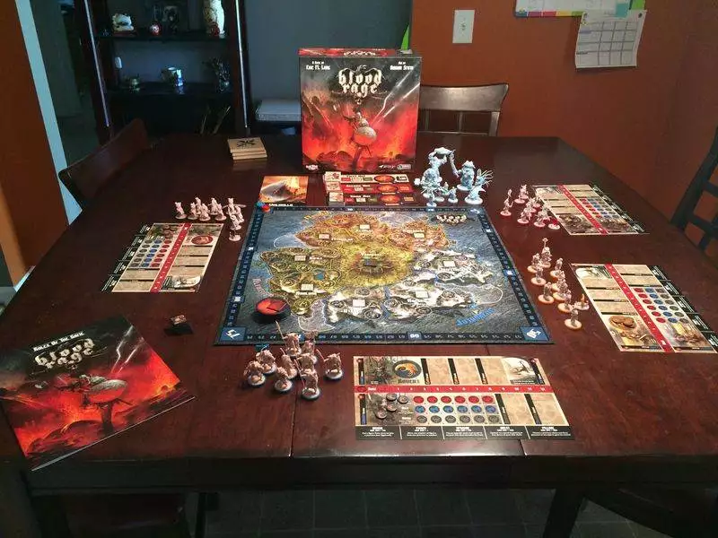 I Blood Rage kontrollerer hver spiller deres egen Viking-klanens krigere, leder og skib. Ragnarök er kommet, og det er verdens ende! Det er vikingernes sidste chance for at gå ned i en glans af herlighed og sikre deres plads i Valhalla ved Odins side! For en Viking er der mange stier til herlighed. Du kan invadere og plyndre landet for dets belønninger, knuse dine modstandere i episke kampe, opfylde opgaver, øge din klans statistik eller endda dø glorværdigt enten i kamp eller fra Ragnarök, den ultimative uundgåelige undergang.
