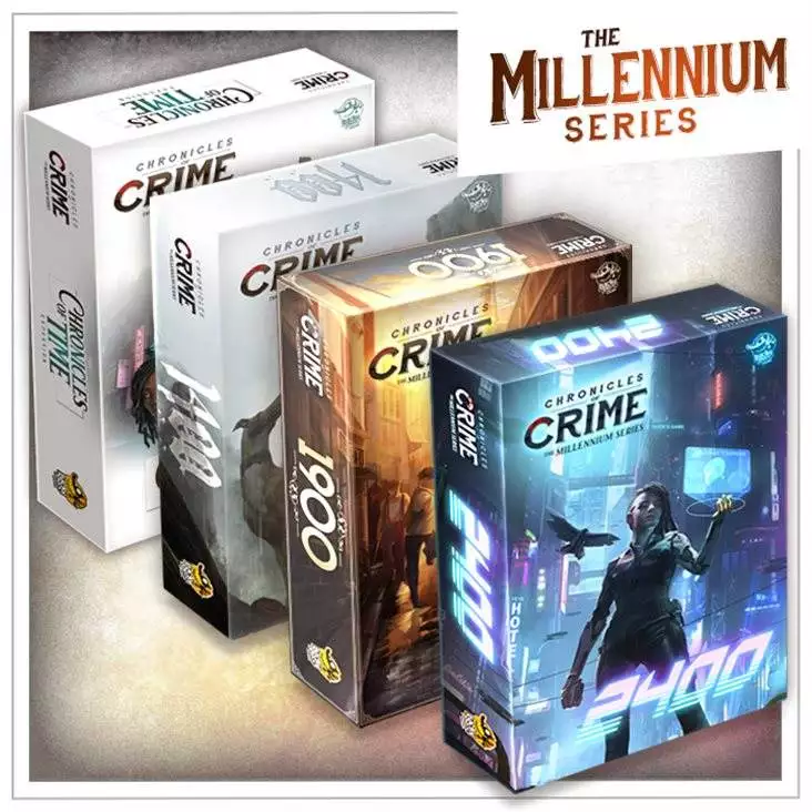 Chronicles of Crime er tilbage med en række spil kaldet “The Millennium Series”. Og ved køb at vores sæt af 3 uafhængige spil, får du et gratis eksemplar (udvidelse) som kun kunne fåes igennem Kickstarter. (begrænset antal)