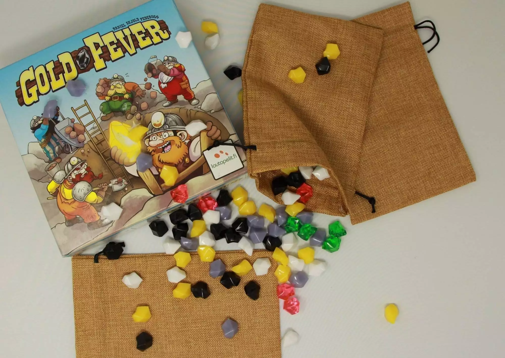 Spillet indeholder 5 klude poser og 95 store ædel stykker. Den er død simpel at spille og inkluderer fire varianter til at blande oplevelsen.