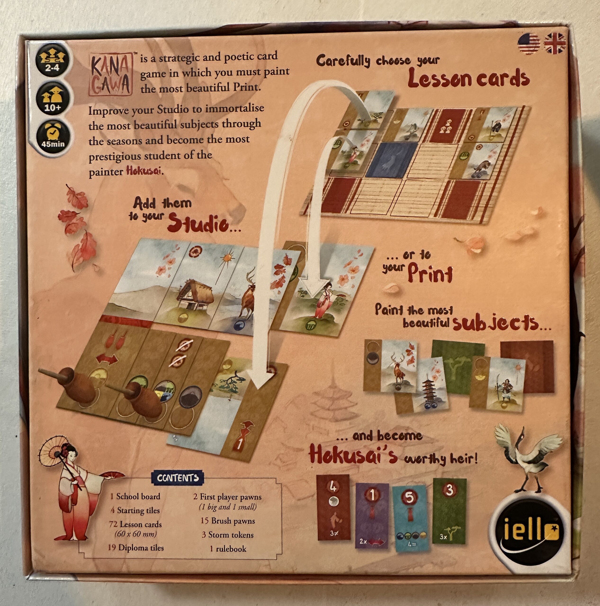 1840: I Kanagawa, Tokyos store bugt, besluttede Mester Hokusai at åbne en maleskole for at dele sin kunst med sine disciple. Du er en af disse disciple, og mere end noget andet ønsker du at bevise, at du er den “skøre, gamle kunstner” værdig. Følg hans lære for at udvide dit atelier og male dine foretrukne motiver (træer, dyr, figurer, bygninger), alt imens du er opmærksom på årstidernes skiften for at skabe det mest harmoniske tryk … det, der vil blive dit livs værk!