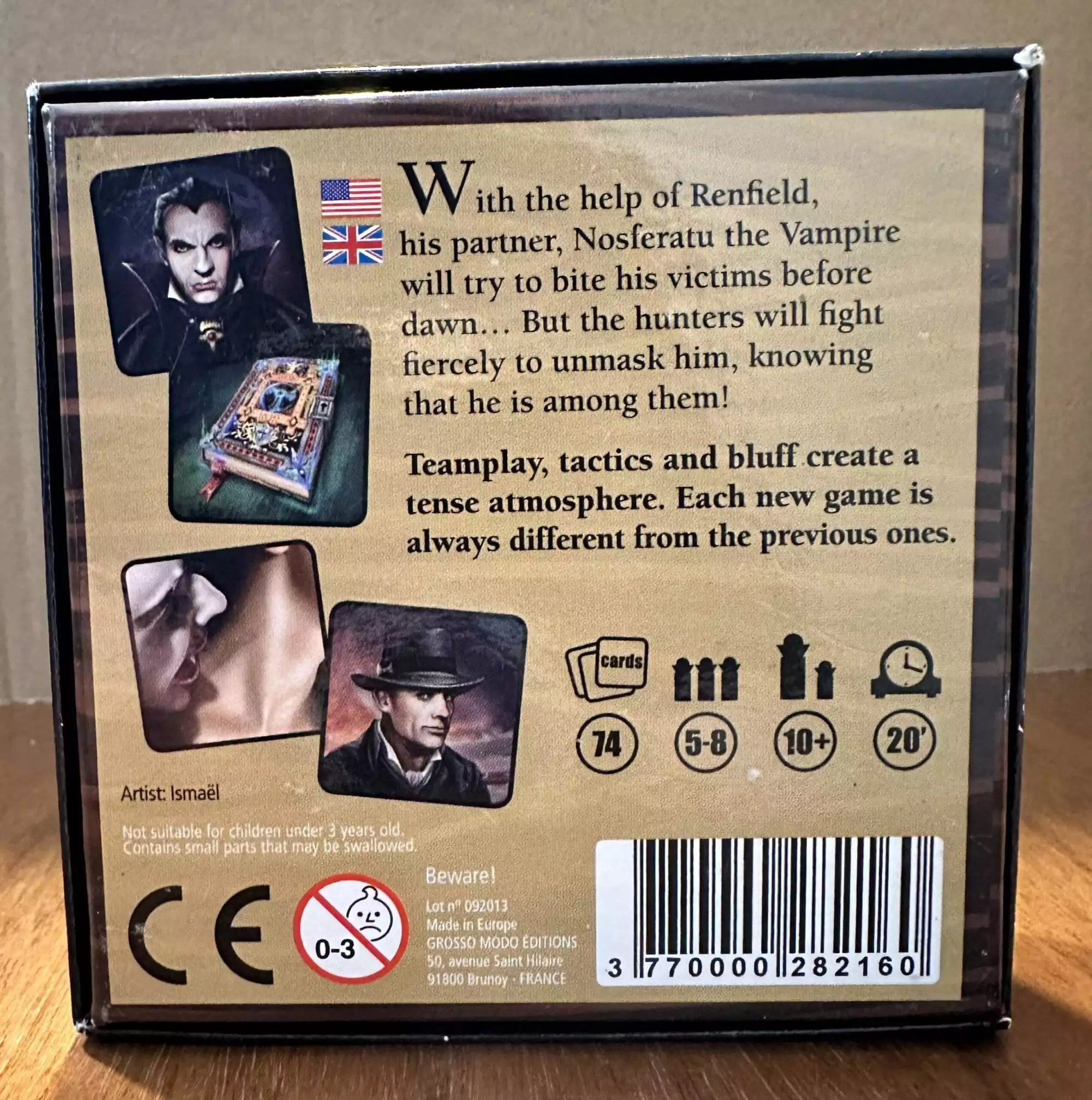 Nosferatu er et kortspil, der blander taktik, bluffing og holdspil, hvor vampyren og Renfield står over for vampyrjægerne. I starten af spillet ved alle, hvem Renfeld er, og Renfield ved, hvem af jægerne, der faktisk er en vampyr (da han vælger, hvordan karakterkortene skal fordeles), men vampyrens identitet er skjult for alle andre. Jægerne skal identificere vampyren og dræbe ham med den forfædres indsats, før han kan spille fem bidekort; hvis jægerne ved et uheld sætter en af deres egne, så taber de vildtet, demoraliserede og svækkede.