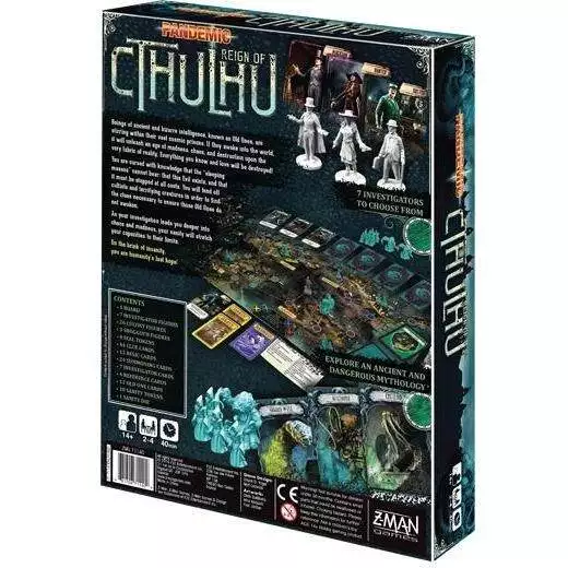 Dette er et fritstående spil inspireret af det anerkendte andelsspil Pandemic. I denne version er spillere efterforskere, der skal samarbejde om at forsegle fire porte og derved forhindre, at området bliver overskredet med kultister eller Shoggoths, og forhåbentlig forhindrer Cthulhu i at vågne op. Oplev det klassiske Pandemiske gameplay med en forfærdelig vri, når du kæmper med tolv gamle, der truer verden med deres unikke kræfter. Hold viden om dig, afvis sindssyge og red menneskeheden! Reign of Cthulhu