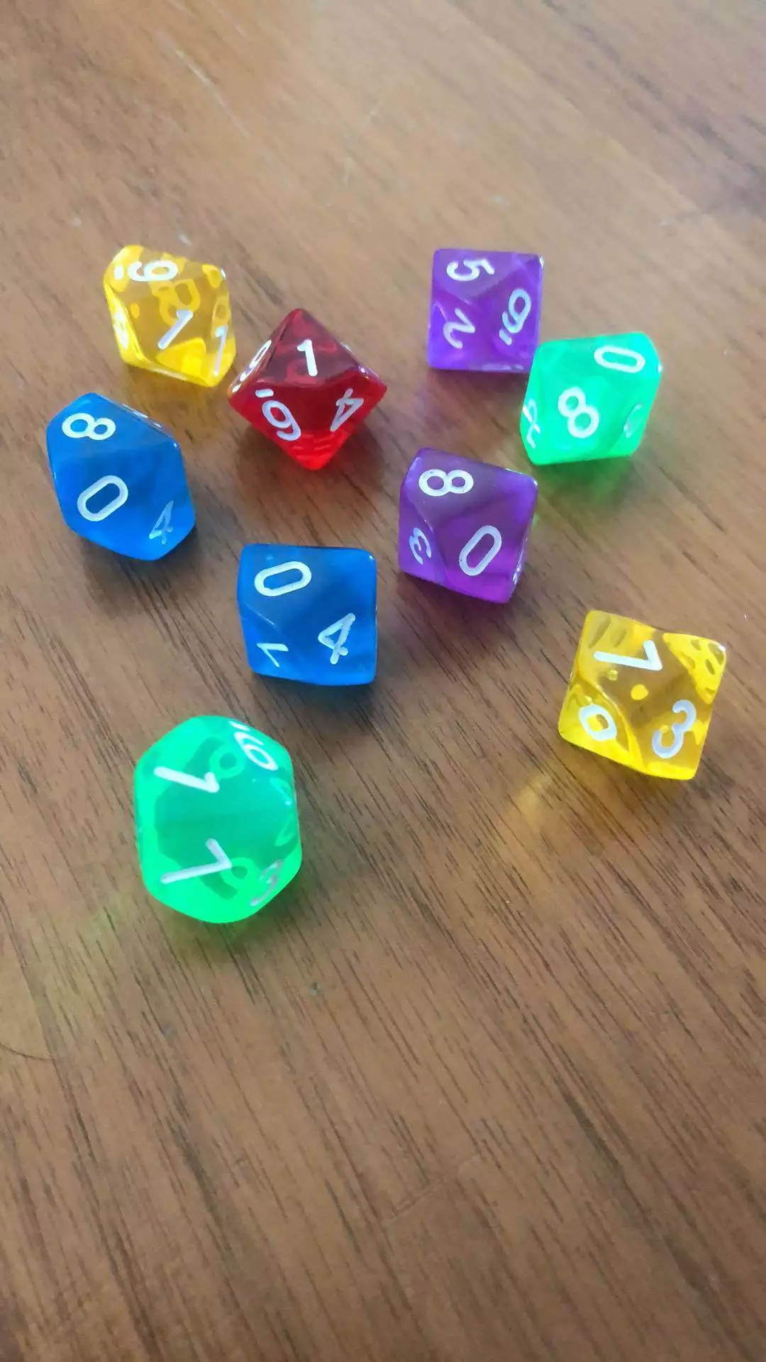 Terninger i forskellige farver D10